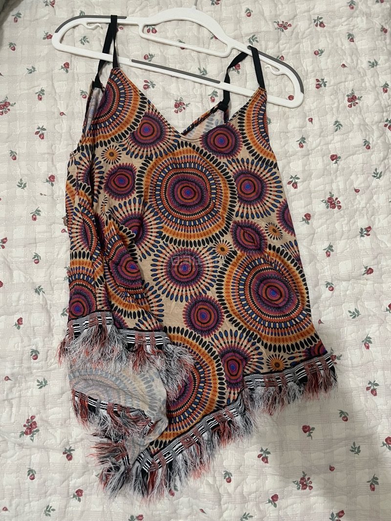 这次淘到了一件紫色小花吊带 ,一件白色泡泡袖t恤,一件迷幻漩涡毛毛吊带,都是我的心头好,每次海淘到的小上衣都超完美,能搭好多裤子裙子,下次继续!