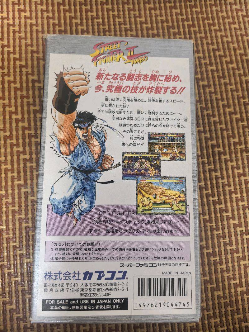 这次来的是SFC的经典卡带,街头霸王2加速版。相对于之前的街霸来说速度提升了,打击感也更加畅快了。当年能把街机画质搬到家用机平台也是技术提升的体现,外盒稍有破损但还可接受,卡带保存不错,插机直接就读。非常不错