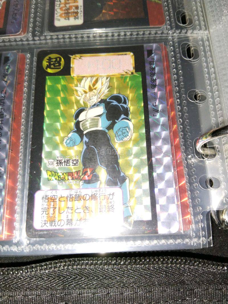 万代日版,本弹第13弹闪卡,1992年发行。 NO.507-四大超级赛亚人 NO.508-孙悟空 NO.509-贝吉塔 NO.510-特兰克斯 NO.511-孙悟饭 NO.512-沙鲁