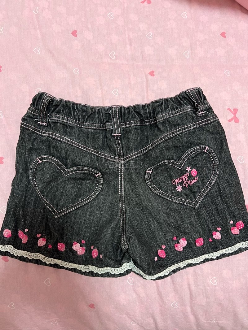 120 メゾピアノダークデニム半ズボン キュロット ショートパンツ 苺柄