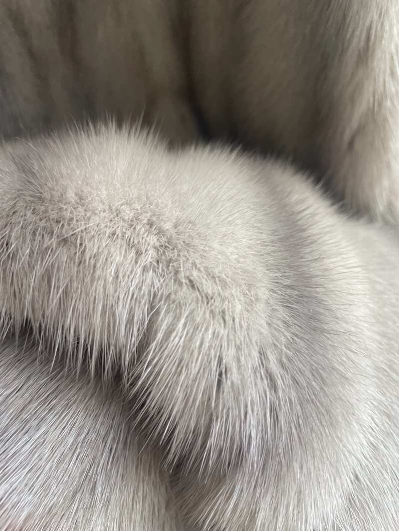 初冬阳光下,这件的银蓝光泽太美了!走动时能听到皮草特有的轻柔沙沙声,面料垂顺不压身。春秋搭衬衫优雅,冬日配大衣贵气。实物比图片惊艳得多,下次还会回购!
