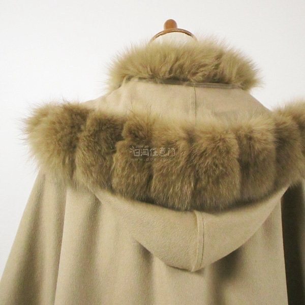 売切り!!★r7fu111717★LORITTI フォックスファートリミング カシミヤ素材 フード付き ポンチョ マント